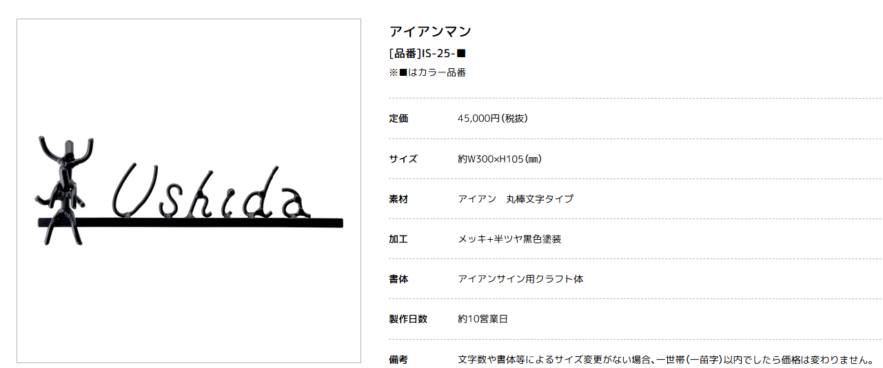 美濃クラフト IS-25 アイアンクラフト表札 アイアンマン [IS-25 メーカー価格表の33%OFF+送料無料で販売]
