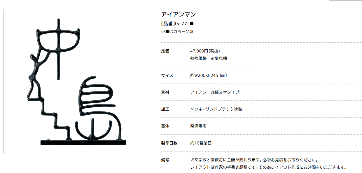 美濃クラフト IS-77 アイアンクラフト表札 アイアンマン [IS-77 メーカー価格表の33%OFF+送料無料で販売]