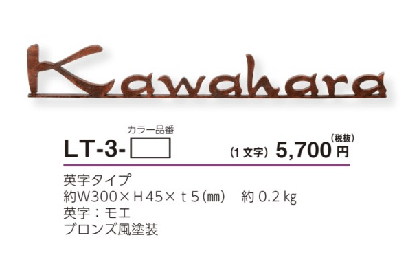 LT-3-とは、高級感のある厚み5ミリのステンレス素材でブロンズ塗装をした切り文字表札です。