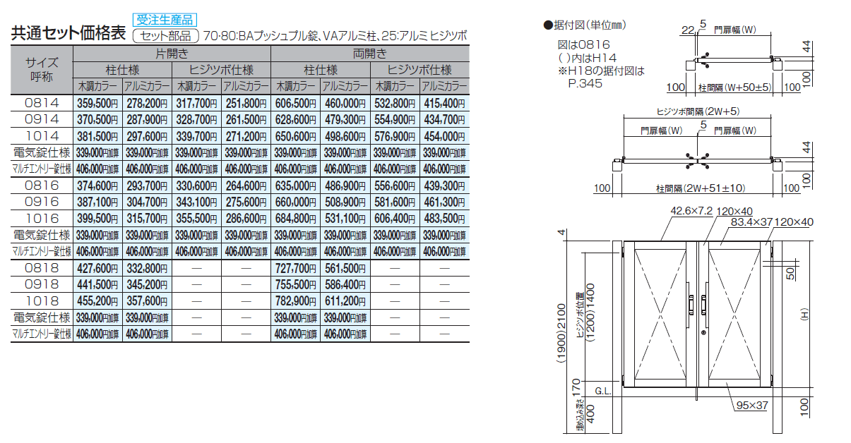 (セットでの販売価格となります。電気錠仕様・マルチエントリー錠仕様、