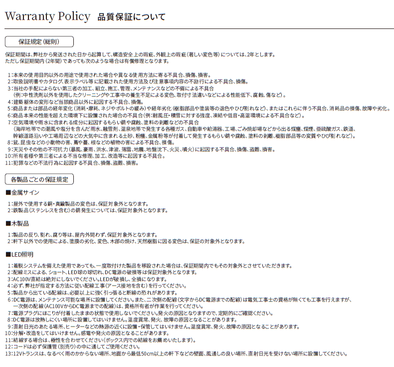 詳細については、上部の画像にある品質保証についてをご確認下さい。