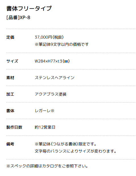 書体や表面仕上げは自由に選べるので、