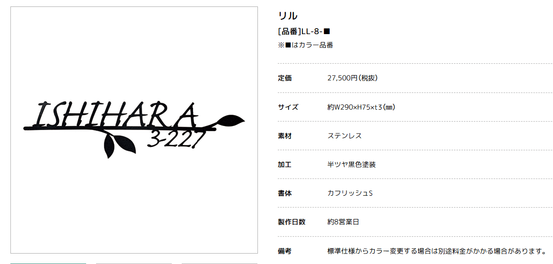 ・製作工程上、文字を変形、太くする、つなぎを入れる場合があります。