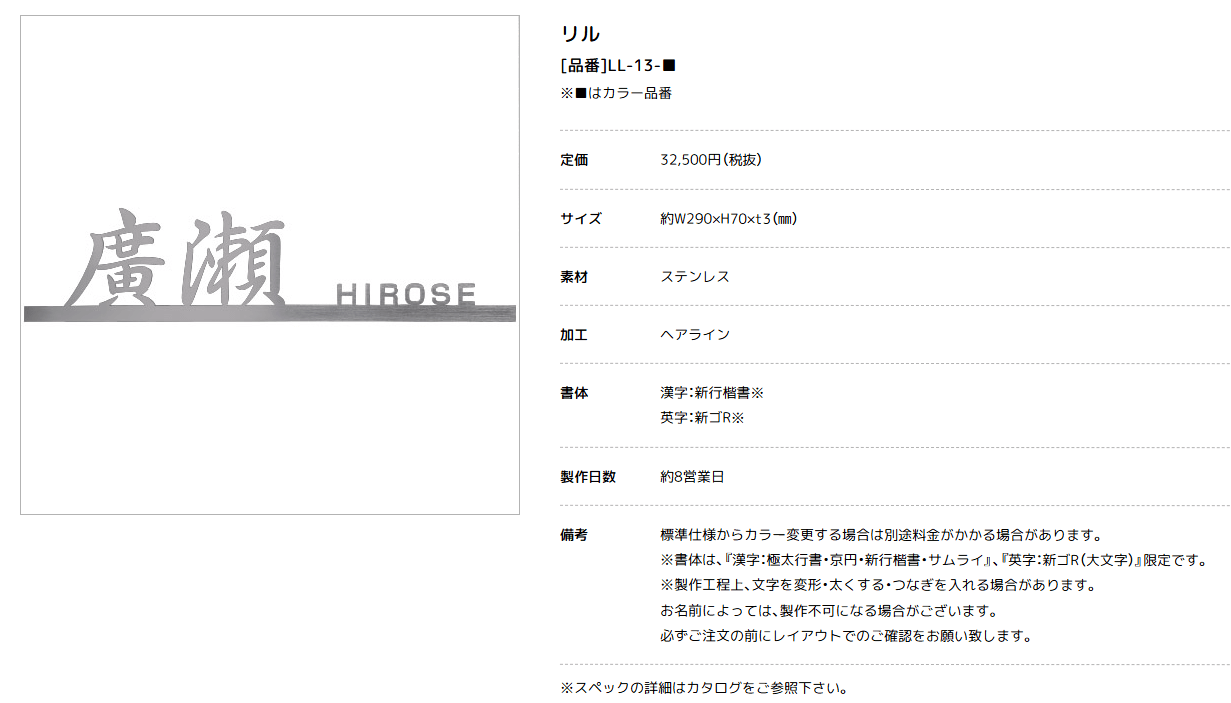 ・製作工程上、文字を変形、太くする、つなぎを入れる場合があります。