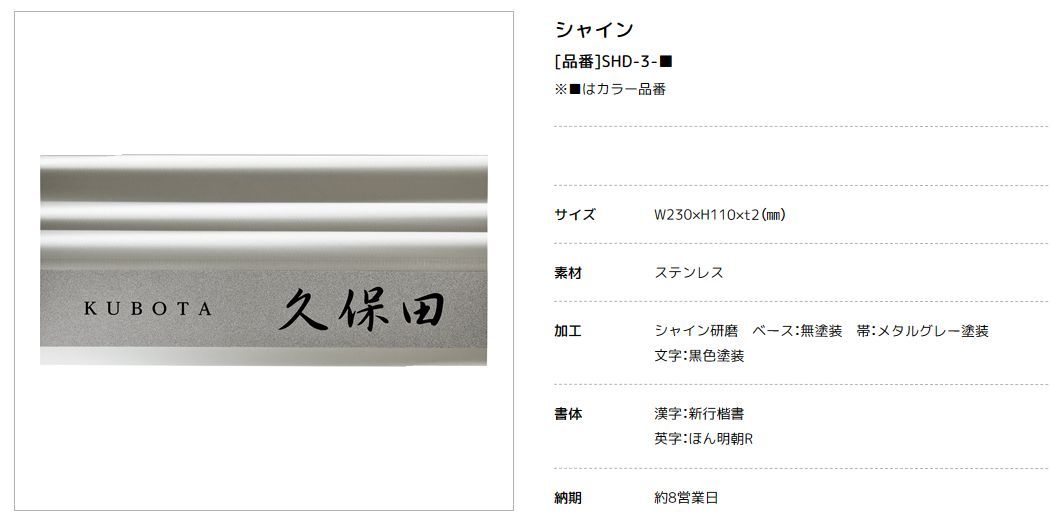 シャイン SHYNE ドライエッチングタイプ ステンレス表札