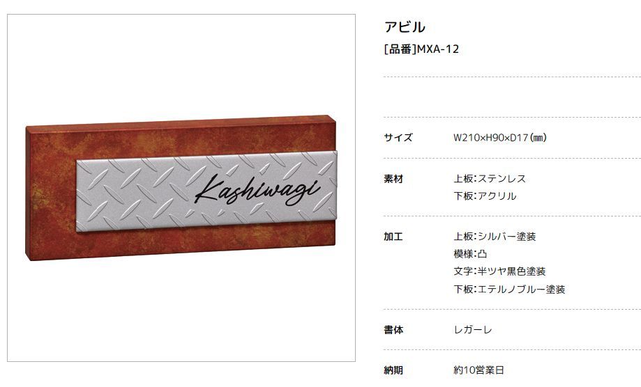 美濃クラフト MXA-12 アビル HABILE ステンレス表札