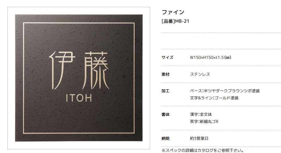 MB-21 ファイン Fine ドライエッチング ステンレス表札