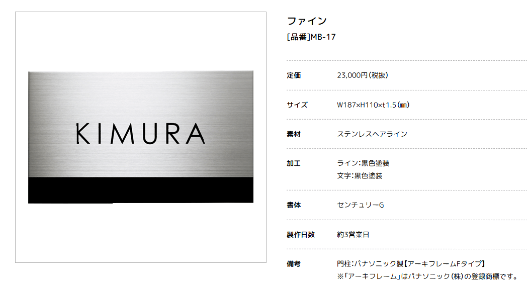 美濃クラフト MB-17 ファイン Fine ドライエッチング ステンレス表札 [メーカー価格表の43%OFF+送料無料]