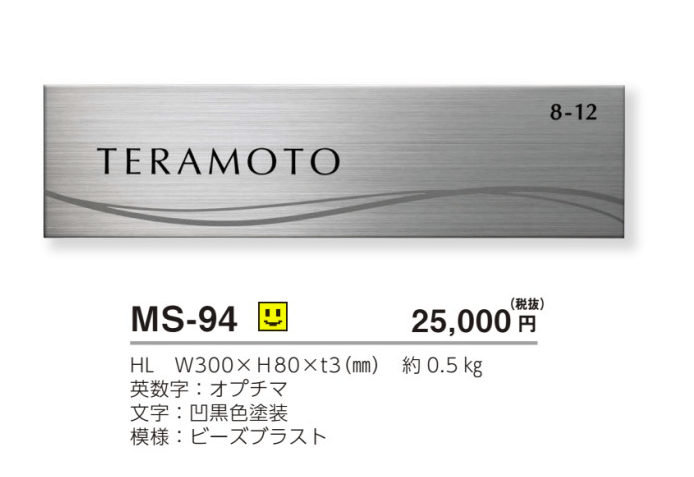 MS-94 ファイン Fine ウェットエッチング3ミリ厚 ステンレス表札