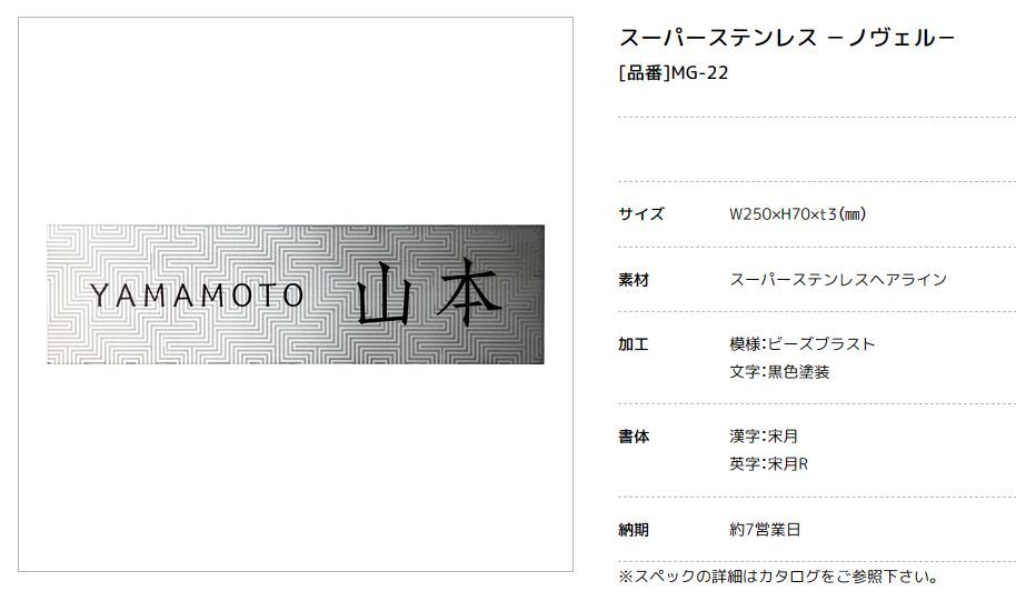 スーパーステンレス 横幅250×高さ70ミリの表札です。