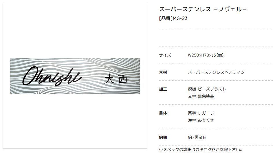 スーパーステンレス 横幅250×高さ70ミリの表札です。