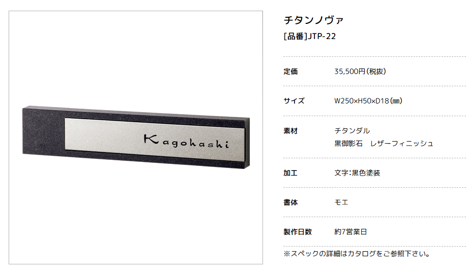 JTP-22とは、上質なチタンダルと、異素材との新しい輝きを使用した表札です。