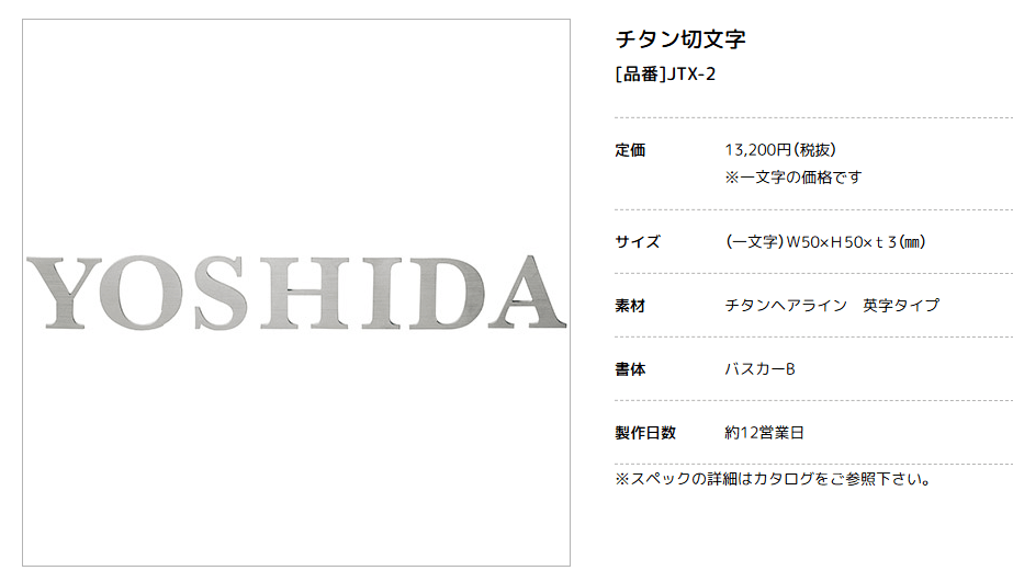 JTX-2とは、最新の技術で切り出す美しく繊細なチタン切り文字表札です。