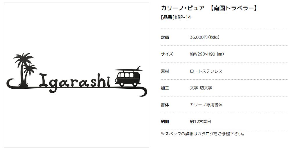 KRP-14とは、カリーノの可愛さそのままにシンプルに仕上げた表札です。