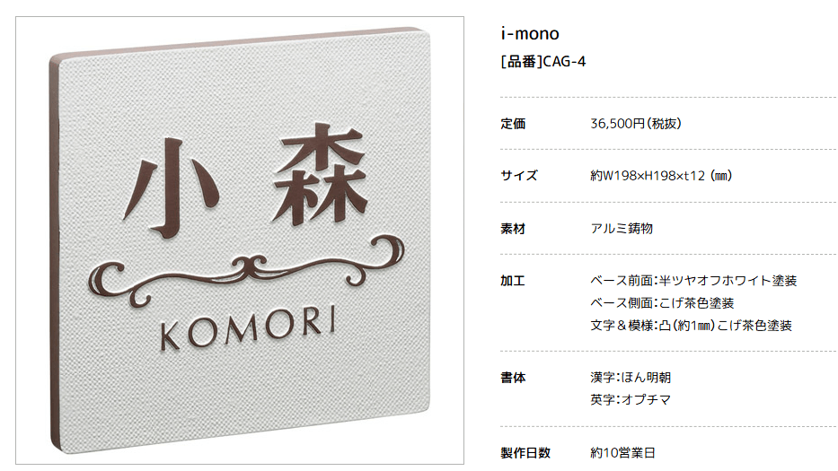 美濃クラフト CAG-4 イーモノ i-mono アルミ鋳物表札