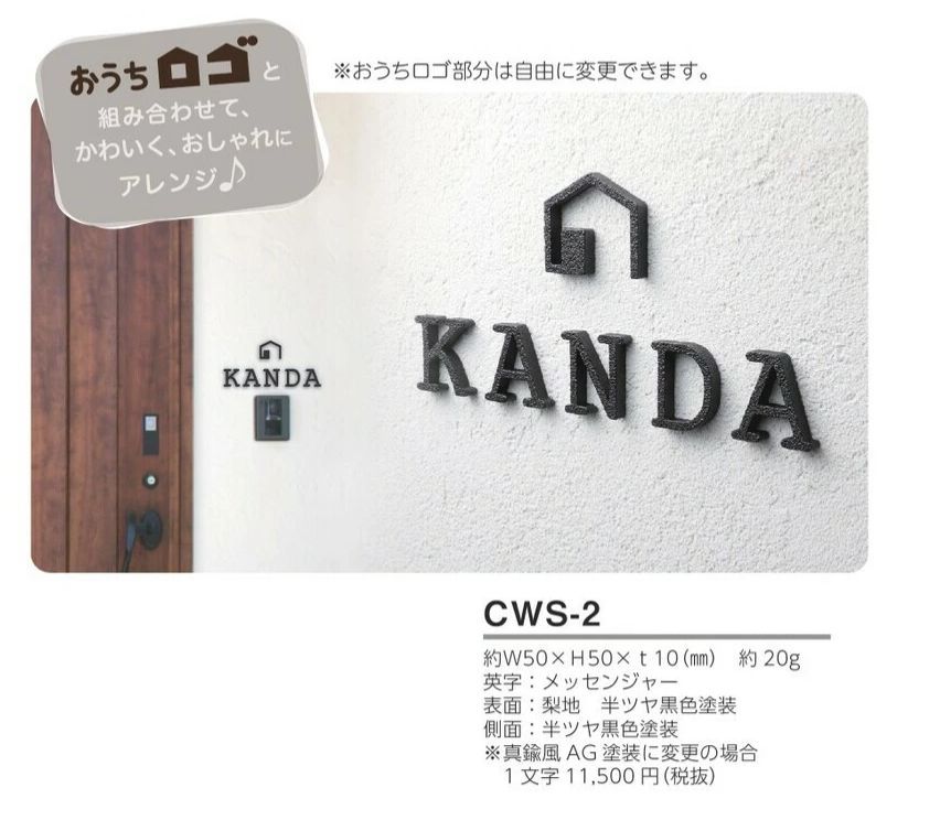 美濃クラフト CWS-2 鋳物文字 英字タイプ アルミ鋳物表札 1文字の価格です。