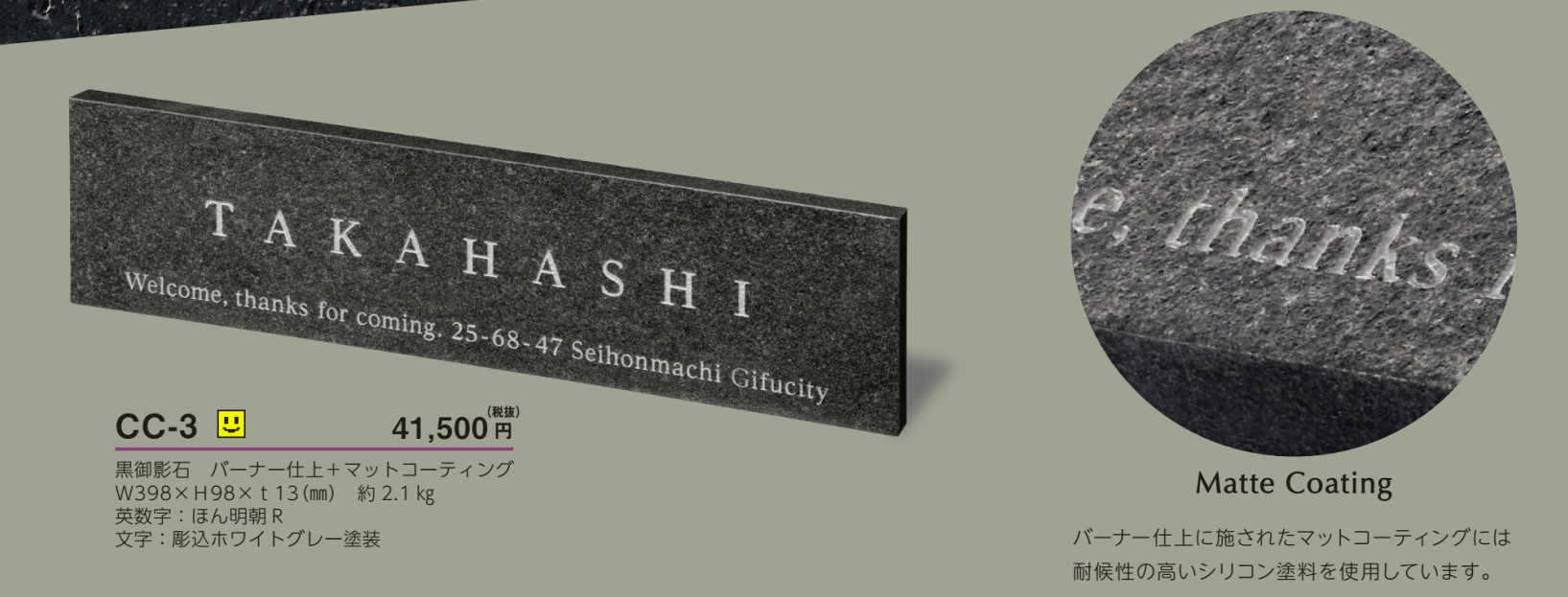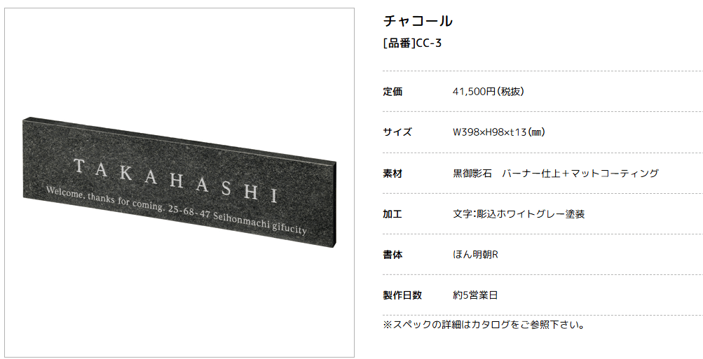 美濃クラフト CC-3 チャコール charcoal 天然石材表札 [メーカー価格表の34%OFF+送料無料]