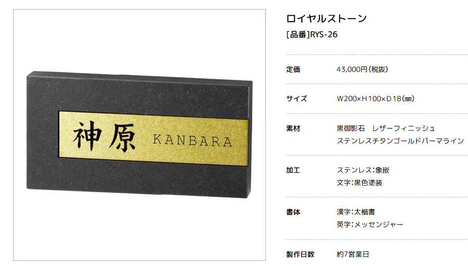 美濃クラフト RYS-26 ロイヤルストーン Royal Stone 天然石材表札 [メーカー価格表の43%OFF+送料無料]