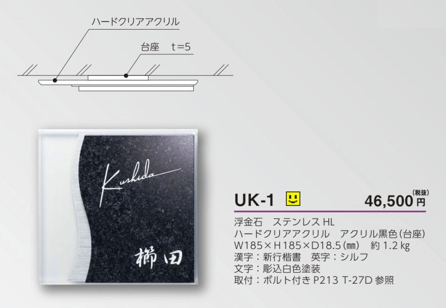 美濃クラフト UK-1 浮金石 UKIGANEISHI 天然石材表札 [メーカー価格表の34%OFF+送料無料]
