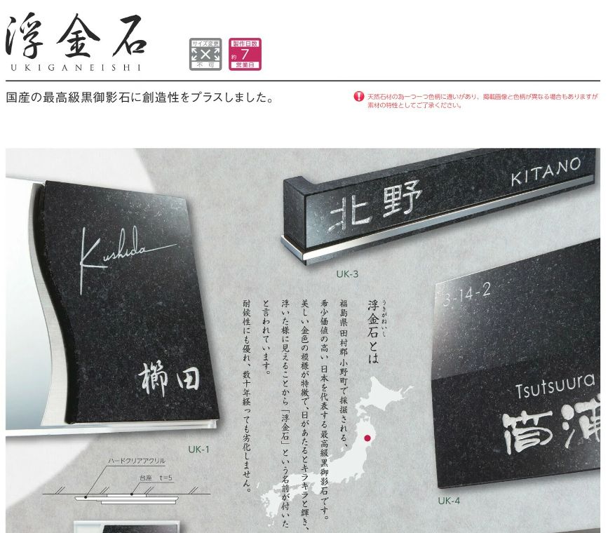美濃クラフト UK-2 浮金石 UKIGANEISHI 天然石材表札 [廃盤商品となります。在庫がある分のみ対応を致します。]