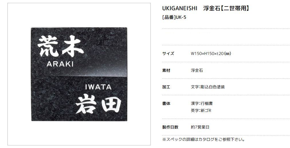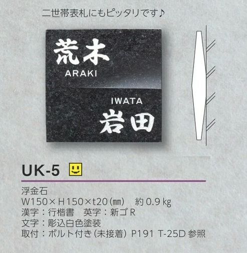 美濃クラフト UK-5 浮金石 UKIGANEISHI 天然石材表札 [廃盤商品となります。在庫がある分のみ対応を致します。]