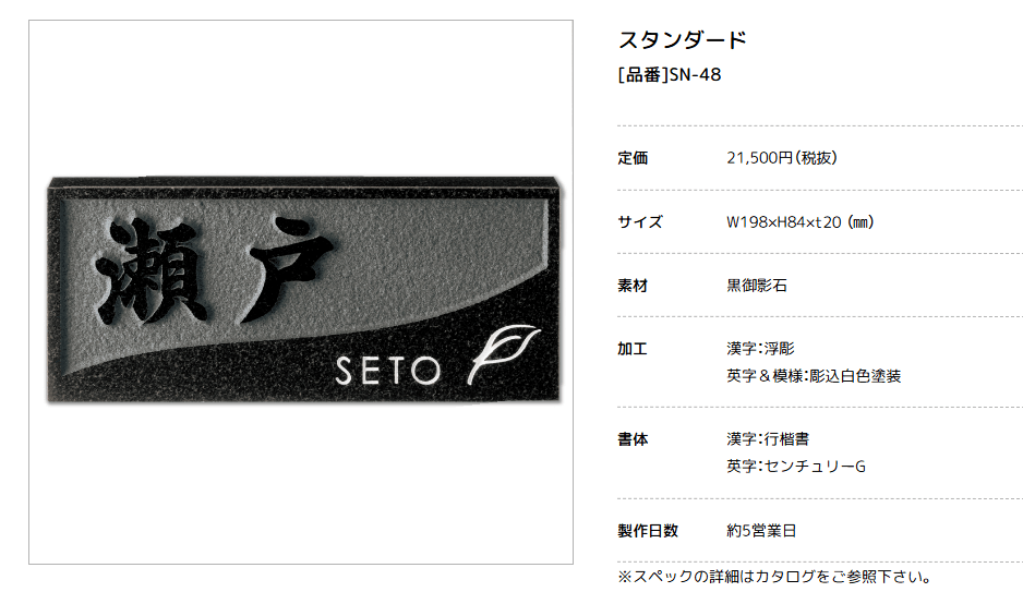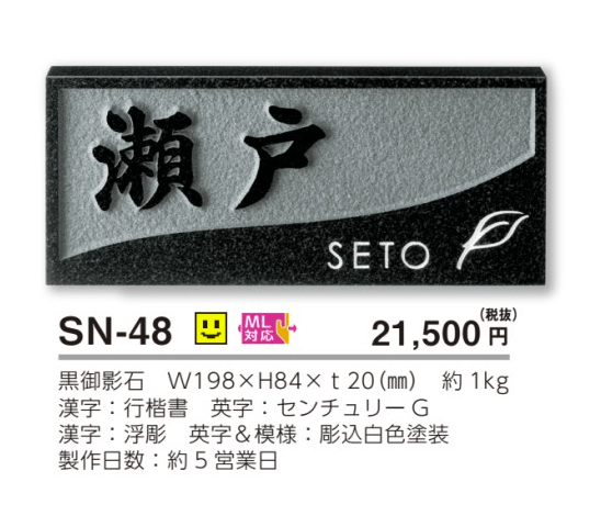 美濃クラフト SN-48 スタンダード Standard 天然石材表札 [メーカー価格表の43%OFF+送料無料]