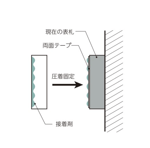 新しい表札の内側に接着剤を塗りつけ、上からかぶせて貼り付けます。