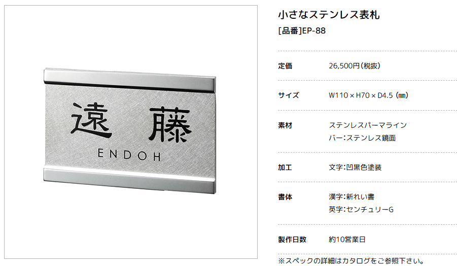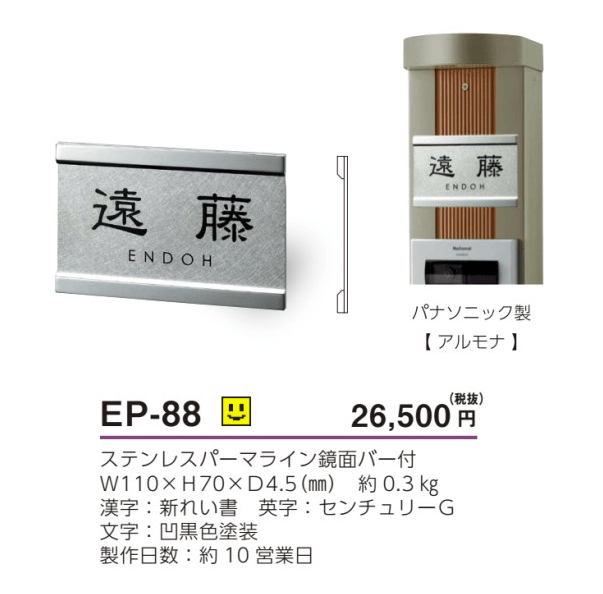 美濃クラフト EP-88 小さなステンレス表札 小さな表札 [メーカー価格表の34%OFF+送料無料]