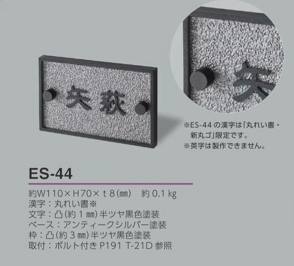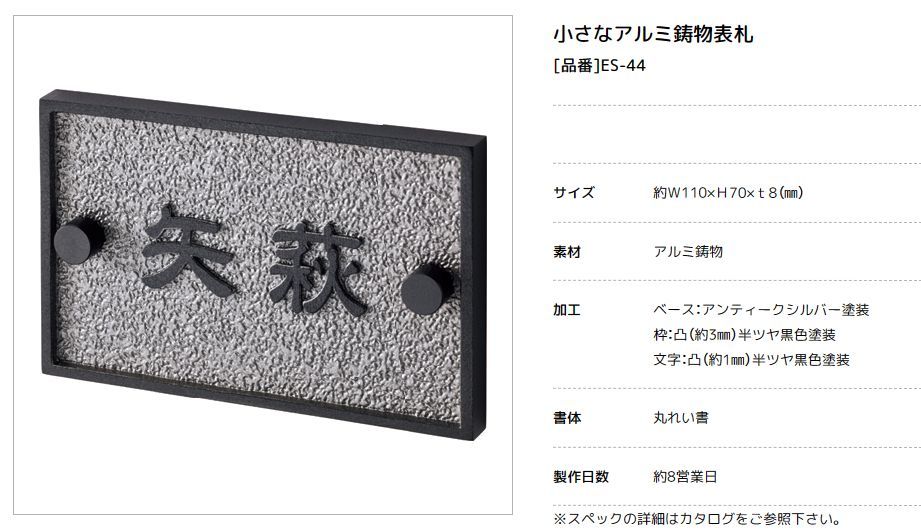 美濃クラフト ES-44 小さなアルミ鋳物表札 小さな表札 [廃盤商品となります。在庫がある分のみ対応を致します]