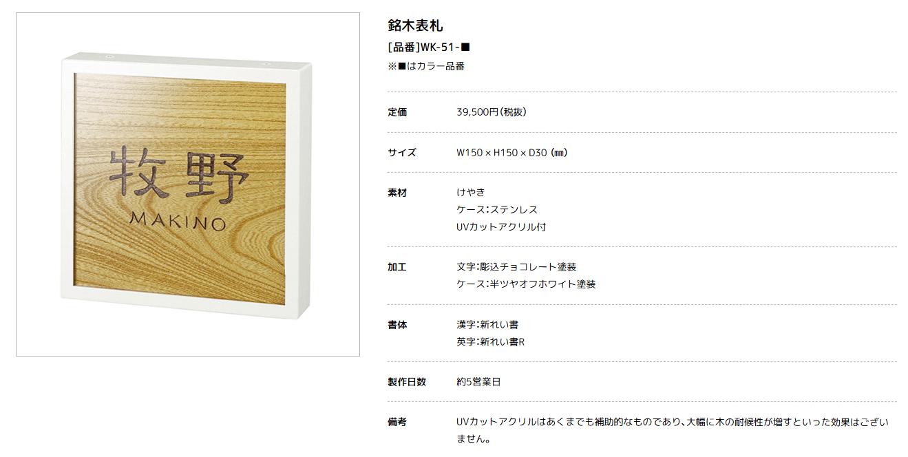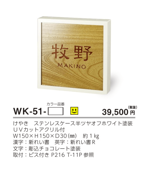 美濃クラフト WK-51- けやき+ステンレスケース表札 銘木表札 [メーカー価格表の43%OFF+送料無料]