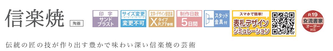 伝統の匠の技が作り出す豊かで味わい深い信楽焼の芸術表札です。