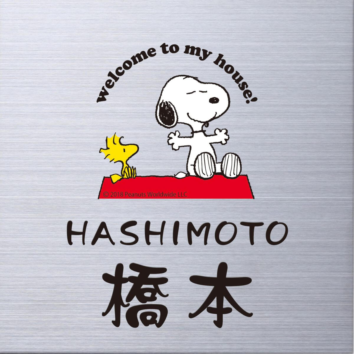 見ているだけで楽しくなる。ポップで可愛らしいスヌーピーステンレス表札です。。
