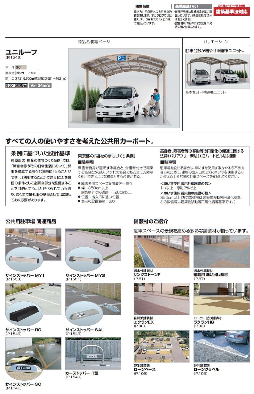 「多くの車の出入りをもっとラクに。積雪20cmまで対応。公共の駐車スペースに最適なカーポート。」です。