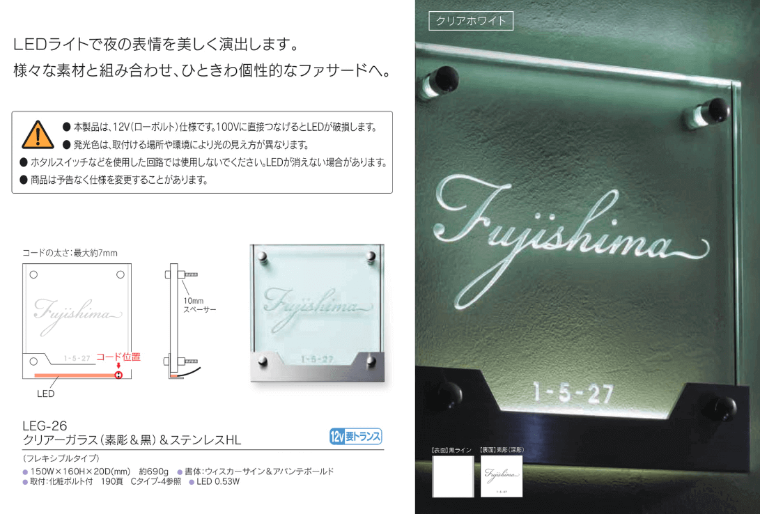 福彫 LEG-26 クリアーガラス(素彫&黒)&ステンレスHL LED BRIGHTSIGN LEDブライドサイン [メーカー価格表の40%OFF+送料無料で販売中]