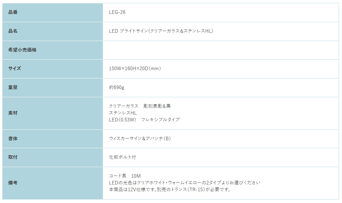 LEG-26 クリアーガラス(素彫&黒)&ステンレスHL LED BRIGHTSIGN LEDブライドサインとは、