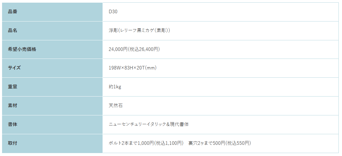 福彫 D30 レリーフ黒ミカゲ UKIBORI 黒ミカゲ浮彫表札 [メーカー価格表の40%OFF+送料無料で販売中]