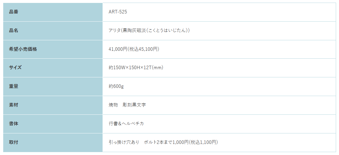 ART-525 黒陶灰磁淡(こくとうはいじたん) ARITA アリタ表札とは、