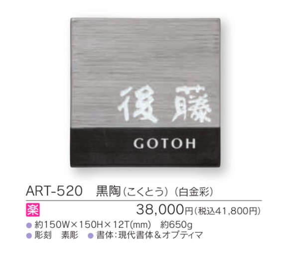ART-520 黒陶(こくとう)(白金彩) ARITA アリタ表札とは、