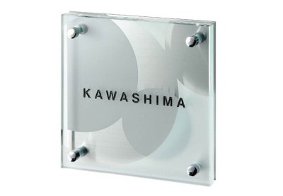 福彫 GPL-520K クリアーガラス(黒文字&素彫)&ステンレス CLEAR GLASS表札
