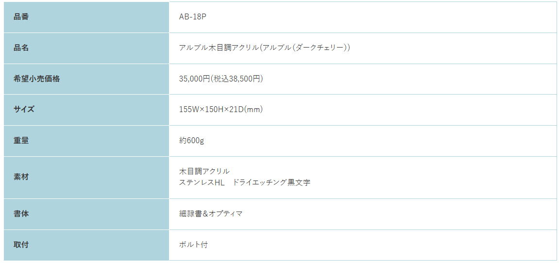 福彫 AB-18P アルブル(ダークチェリー) ARBLE 木目調アクリル表札 [メーカー価格表の40%OFF+送料無料で販売中]