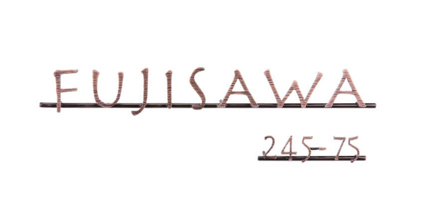 「表面を叩いた鍛造の風合いがアートな雰囲気を演出する表札」です。