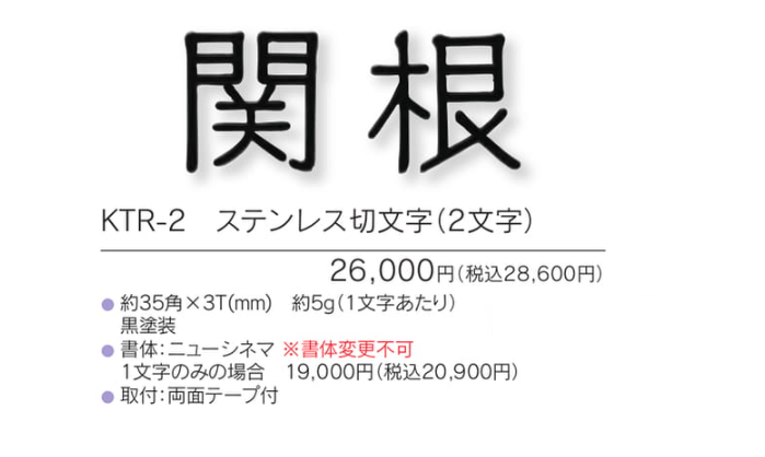 福彫 KTR-2 ステンレス切文字(2文字) TINY SIGN タイニーサイン表札 [メーカー価格表の40%OFF+送料無料で販売中]