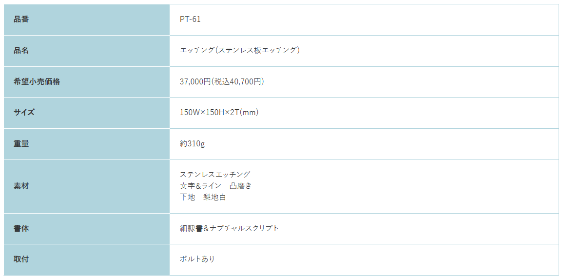 福彫 PT-61 ステンレス板エッチング METAL [メーカー価格表の40%OFF+送料無料で販売中]