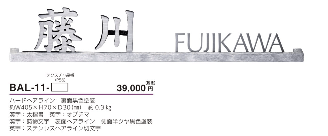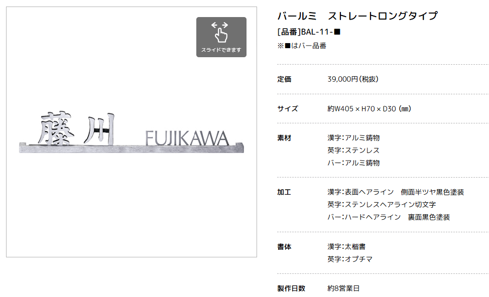 美濃クラフト BAL-11- バールミ BARME表札 ストレートロングタイプ [メーカー価格表の33%OFF+送料無料で販売中]