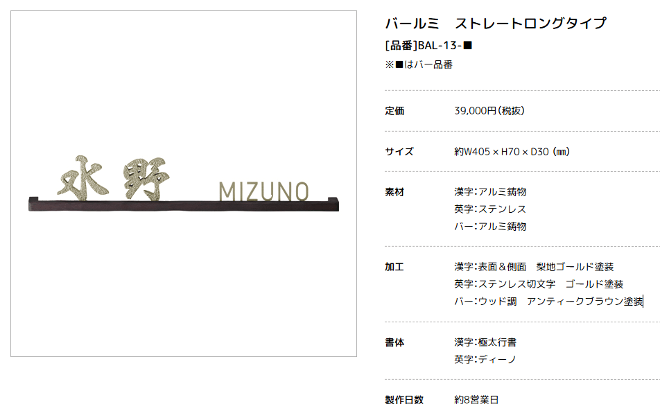 美濃クラフト BAL-13- バールミ BARME表札 ストレートロングタイプ [メーカー価格表の33%OFF+送料無料で販売中]