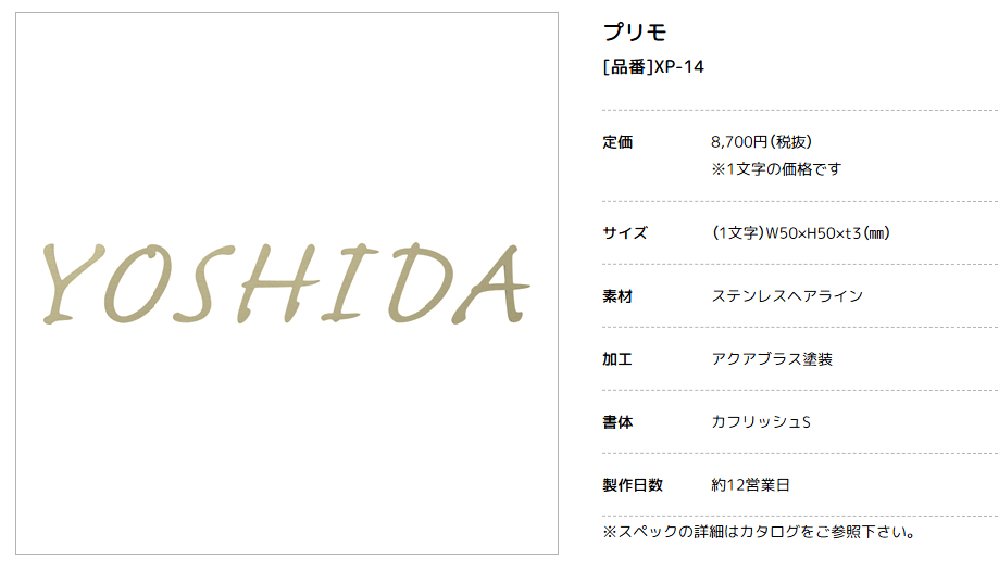美濃クラフト XP-14(1文字あたりのお値段です) ステンレス切り文字 プリモ Primo