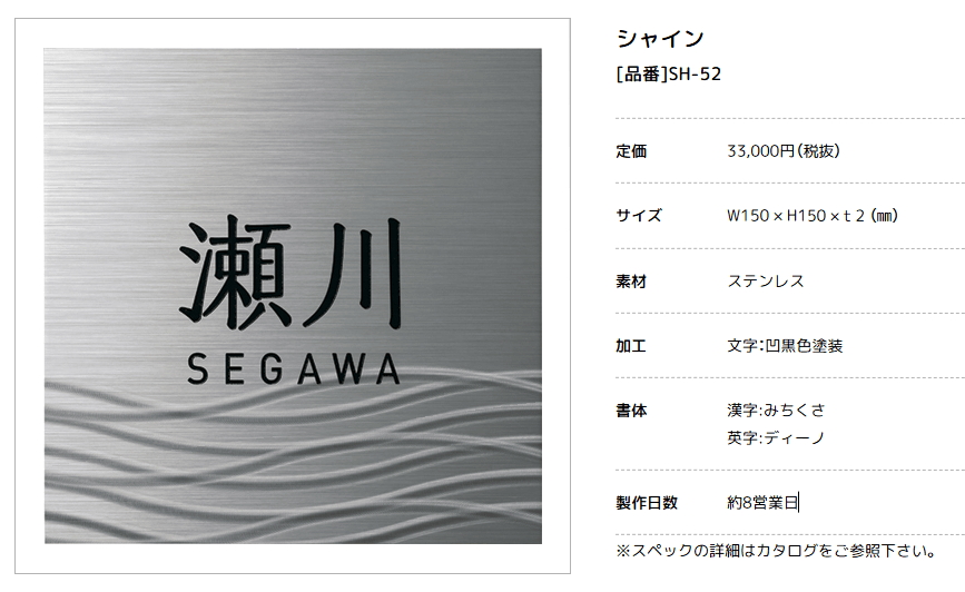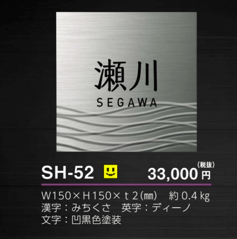 美濃クラフト SH-52 シャイン SHYNE表札 [メーカー価格表の33%OFF+送料無料で販売中]
