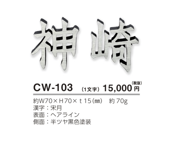 美濃クラフト CW-103 鋳物文字 漢字タイプ アルミ鋳物表札 1文字の価格です。 [メーカー価格表の43%OFF+送料無料]