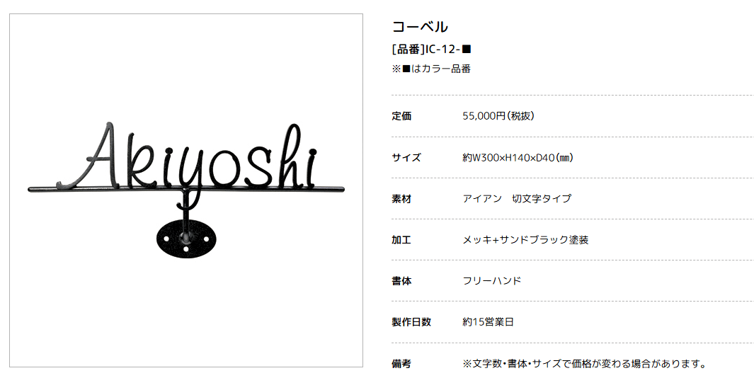 美濃クラフト IC-12- Corbel コーベル アイアンクラフト表札 [メーカー価格表の34%OFF+送料無料]