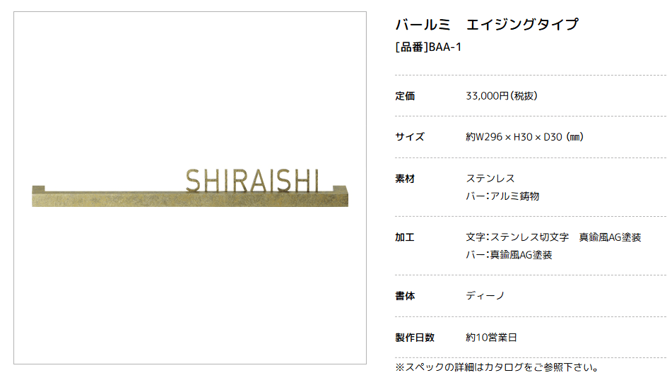 美濃クラフト BAA-1 バールミ BARME表札 エイジングタイプ [メーカー価格表の33%OFF+送料無料で販売中]